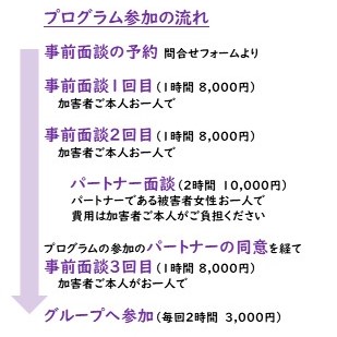 費用・参加の流れ・特徴などは、加害者プログラムについての説明をご覧ください