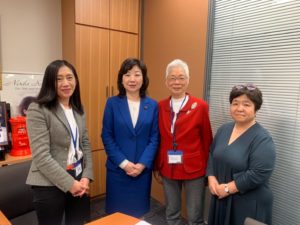 アウェア代表、デートDV防止全国ネットワーク代表理事の山口のり子が、野田聖子議員に会って、デートDV防止教育の義務教育化を要望しました。防止教育に、性の平等を入れることが重要であることを伝えました。