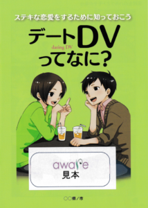 行政や学校関係者の皆さま、ぜひデートDV防止(予防)啓発パンフレットを作る予算を獲得し、その制作をアウェアにご依頼ください。そして子どもたちに配布してください。