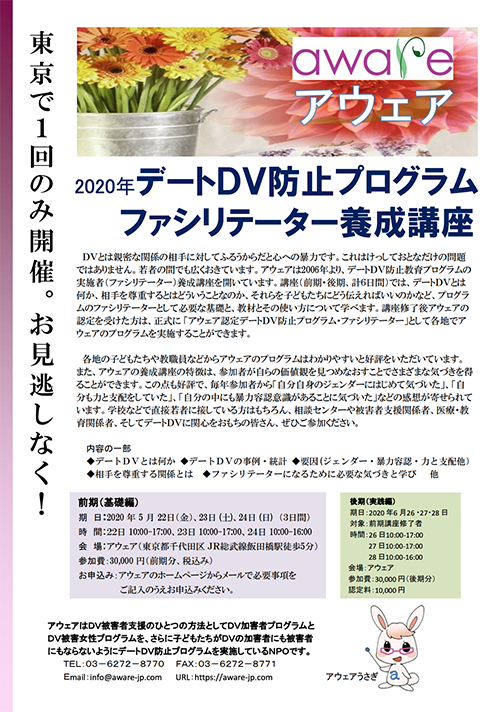 2018年 デートDV防止プログラム・ファシリテーター養成講座開催のご案内